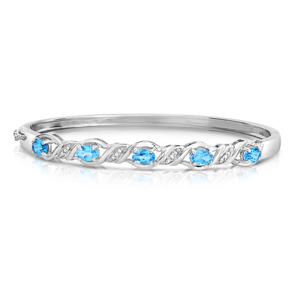 Blue Topaz and Diamond Accent Bangle Bracelet in Rhodium Plated Sterling Silver