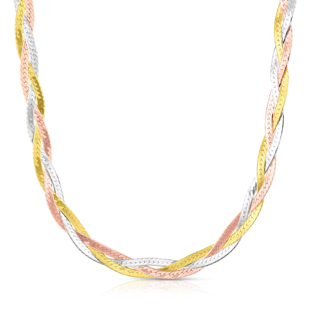 Tri Color Sterling Silver Braided Herringbone Necklace for Women